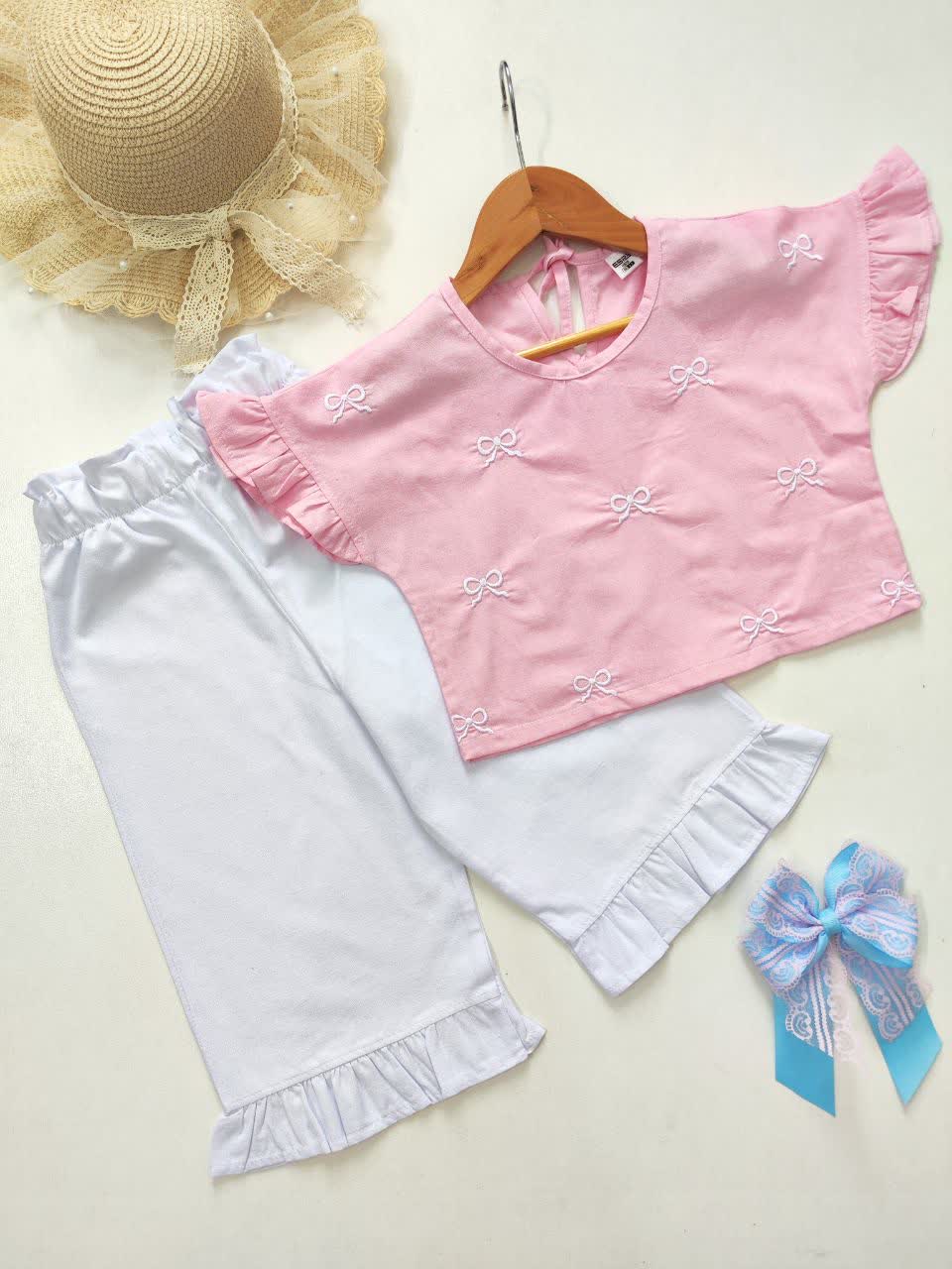 کراپ شلوارک لینن گلدوزی پاپیون🎀
